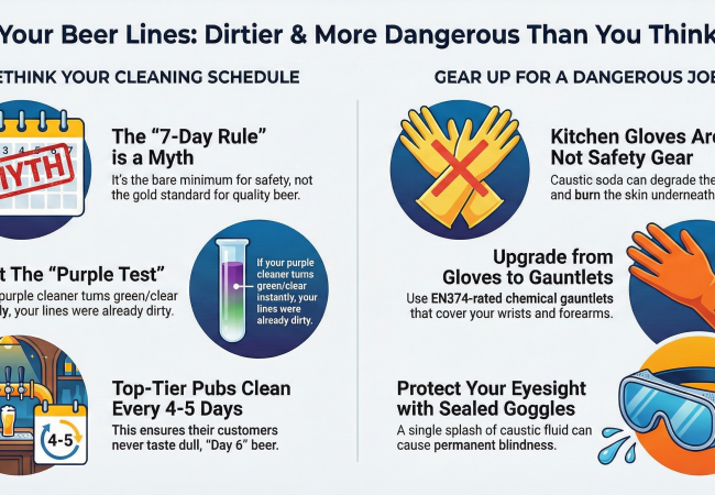 Ask any landlord in the UK how often they clean their beer lines, and they will chant the same mantra: "Every seven days....