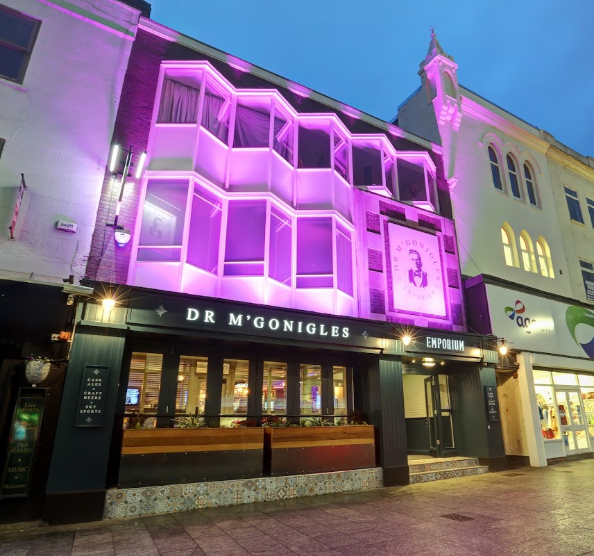Dr McGonigle\’s Emporium is at 97 High Street, Stockton-on-Tees TS18 1BD. Stockton High Street is historically significant as one of the widest market streets in England, the site of Stockton market since medieval times. In common with many northern High Streets, Stockton\’s has faced retail challenges; the pub and hospitality economy is important to the street\’s daytime vitality.