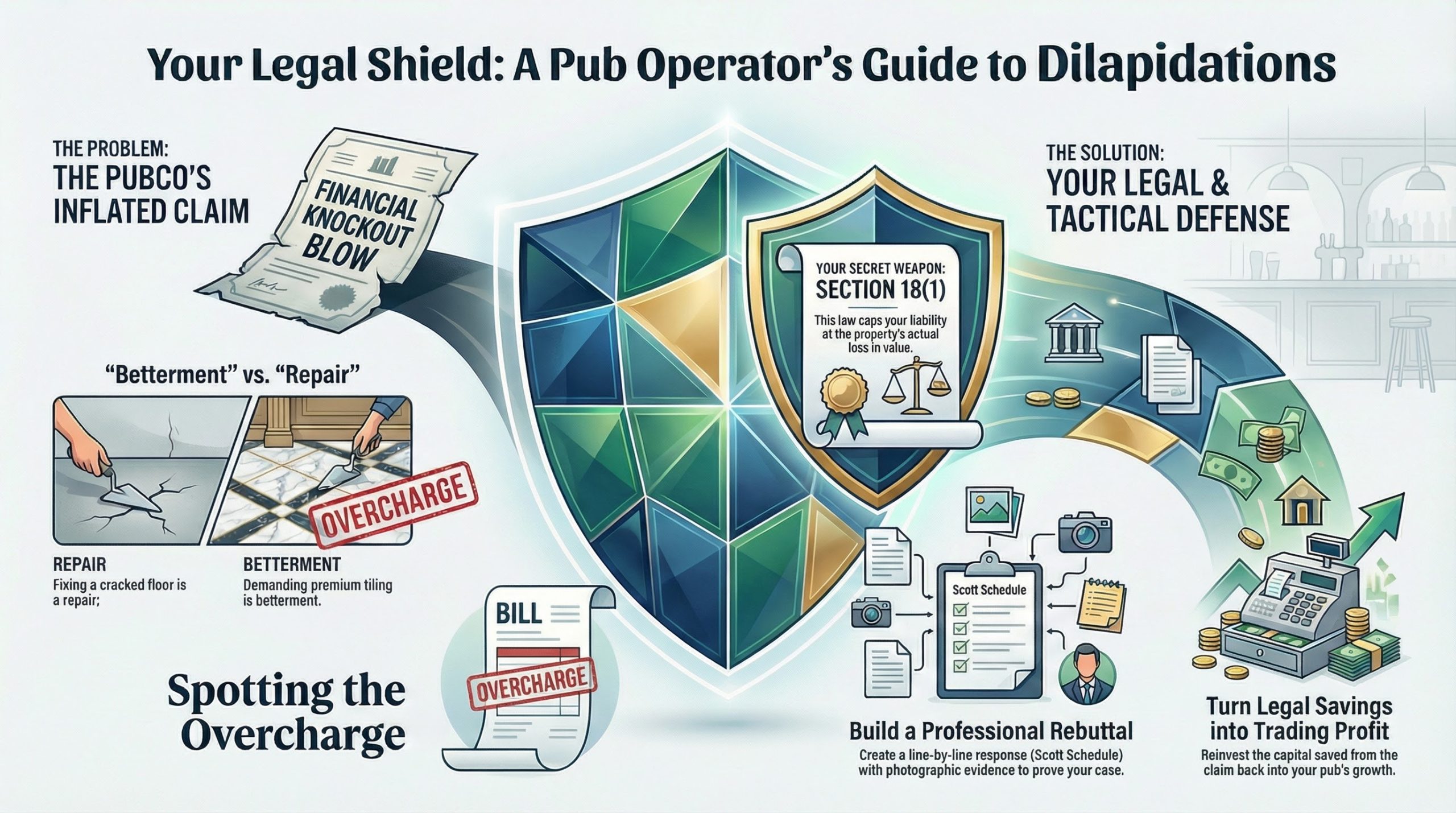 Receiving a Schedule of Dilapidations from your Pubco can feel like a knockout blow to your business. Often running into tens of thousands of pounds, these claims are frequently inflated with items that constitute Betterment rather than legitimate Repair. As an expert operator, you know that every pound handed over to a Pubco is a pound taken away from your team, your guests, and your bottom line.
