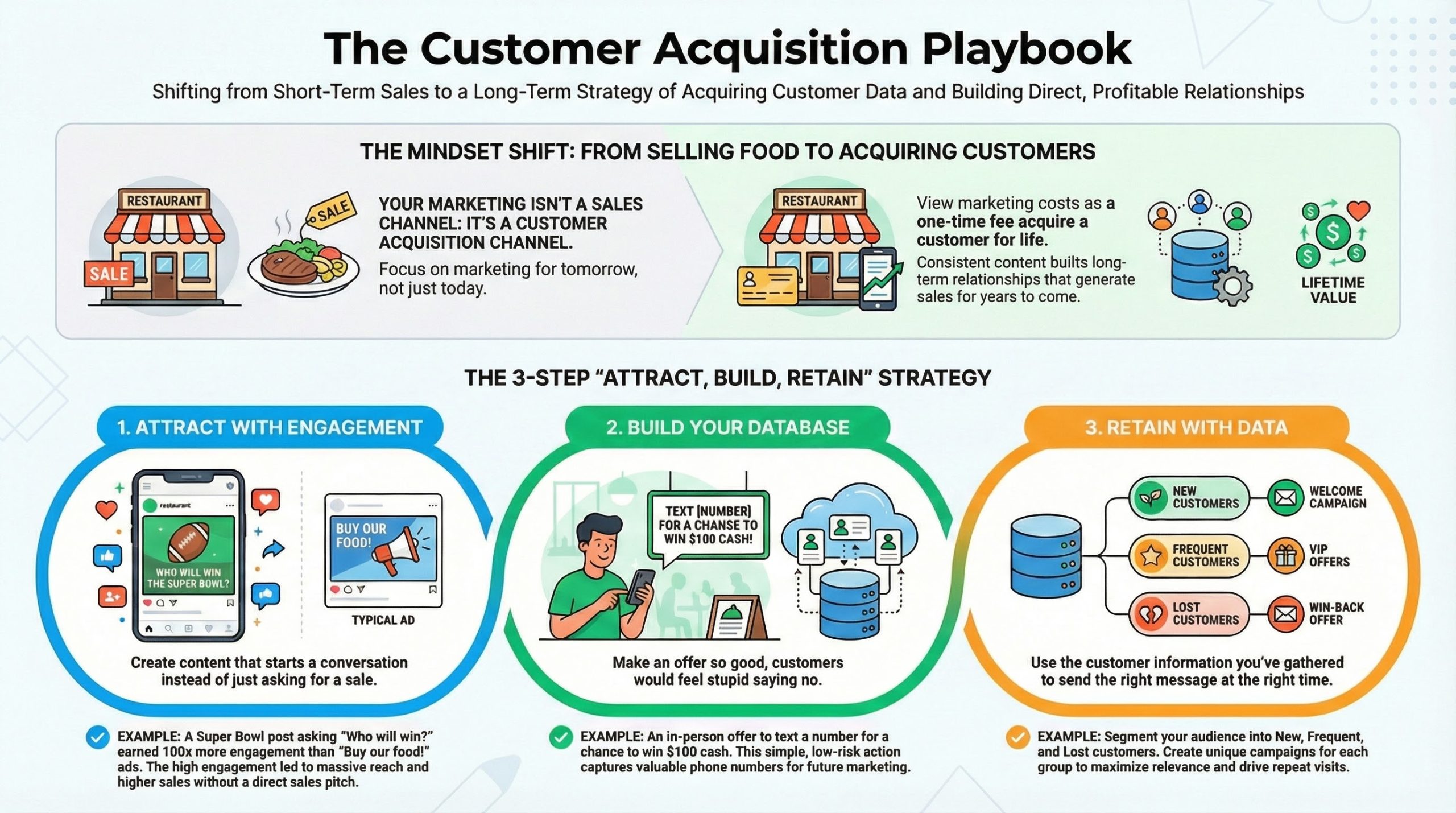 The strategic journey is clear. You shift from viewing third-party apps as a costly sales channel to leveraging them as a powerful, top-of-funnel customer acquisition tool. You stop fighting the fees and start making them work for you. The core steps are simple: Reframe the 30% commission as your customer acquisition cost. Make it your mission to pay that commission only once per customer. Use a Trojan Horse flyer in every delivery bag with an irresistible, no-strings-attached offer to capture their data. And finally, use that data to build your own customer list and own the relationship forever.
